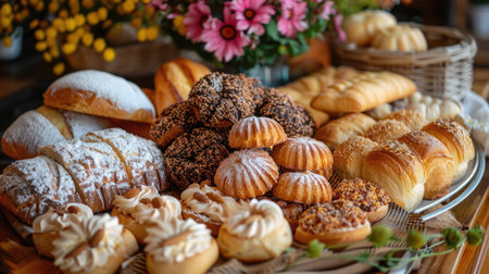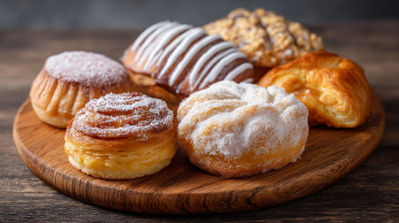 An assortment of pastry and bakery aesthetically presented and served for breakfast or brunch