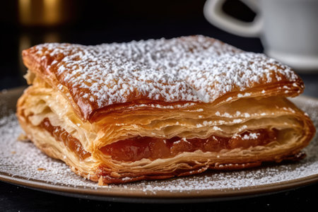 AI Generated. Delicious puff pastry dessert with powdered sugar