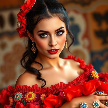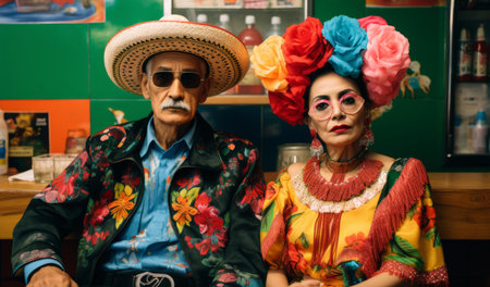 shot of a two people wearing traditional mexican clothing, created with generative ai