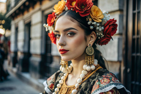 Mexican Independence Day, a close-up portrait of a beautiful Mexican girl in a national costume
