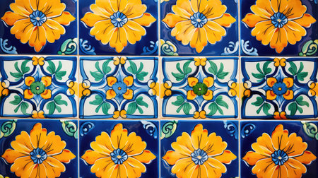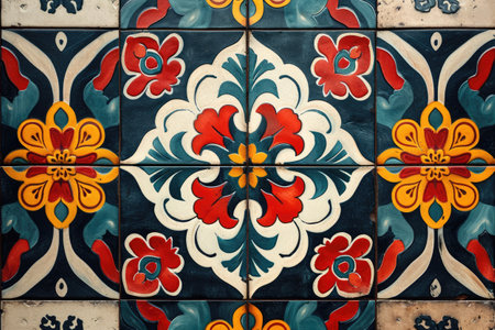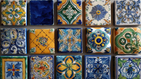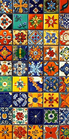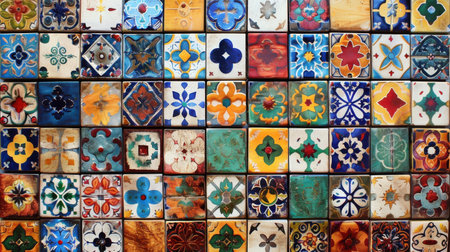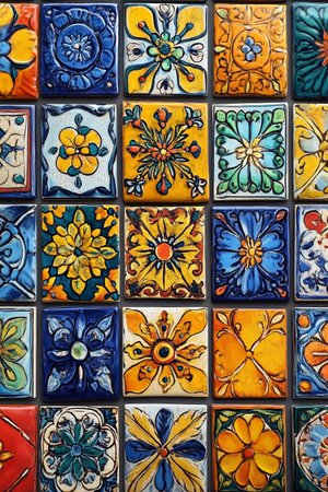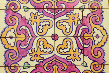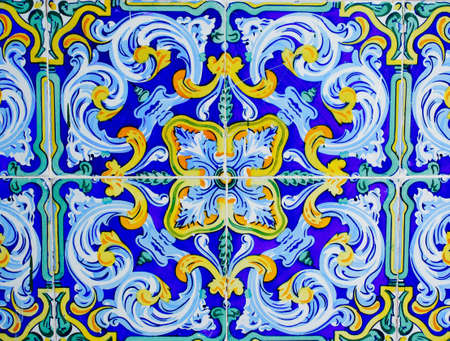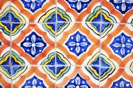 Colorful vintage spanish style ceramic tiles wall decoration.