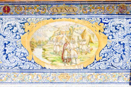 Famous ceramic decoration in Plaza de Espana, Sevilla, Spain. Barcelona theme.