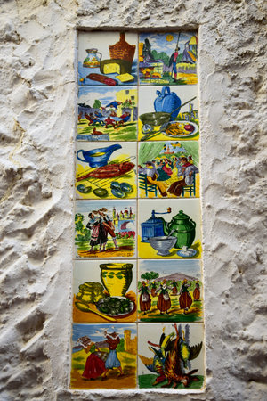 Old Tiles on Wall of Building in the old Town of Marbella Spain depicting aspects of Spanish Life