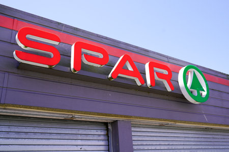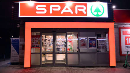 Slovenia, Ljubljana - March 9 2022: SPAR logo outside on the grocery store.