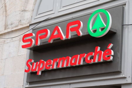Bordeaux , Aquitaine France - 09 20 2021 : spar sign logo market and brand text of store supermarket in town center