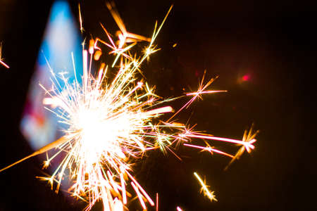 New years eve sparkler isolated on black. Shiny blow of firework sparks. Pyrotechnics background.