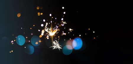 Christmas and New Year party sparkler on black bokeh background