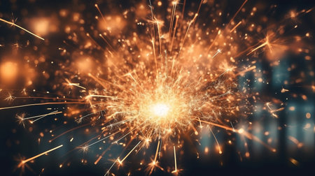 A luminous sparkler bursts with vibrant radiance, scattering shimmering sparks across a textured surface, capturing the essence of celebration and shared happiness.