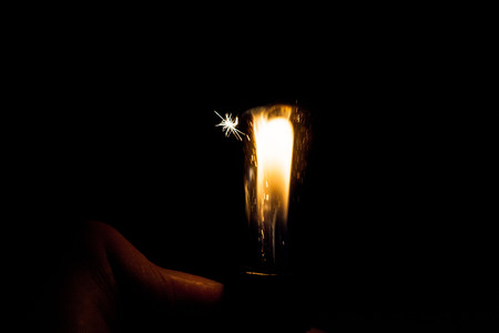Close up view of real sparking light from lighter in dark black background