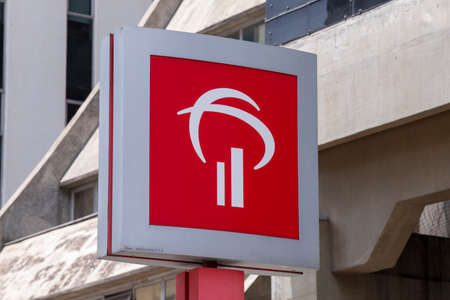 OSTRAVA, CZECHIA - JANUARY 21, 2019: Logo of the Ceska Sporitelna bank on a building in Ostrava, Czech Republic.