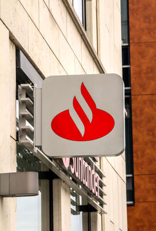 Karlsruhe, Germany : Logo at branch of Santander bank. Banco Santander is the largest bank in the Eurozone and one of the largest banks in the world in terms of market capitalisation.