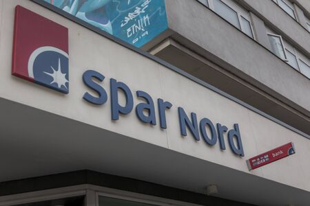 Randers, Denmark - 08 feb 2020: The logo of the Spar Nord building in Randers.