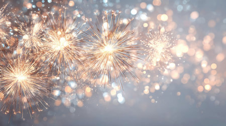 A captivating display of sparkling fireworks with a magical bokeh effect, perfect for illustrating festive events, celebrations, and joyous gatherings.