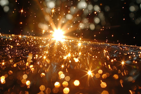 A captivating image showcasing a radiant burst of golden sparkles against a dark backdrop, evoking a sense of magic and wonder.