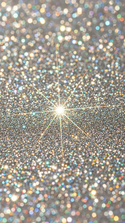 A background filled with shimmering glitter, featuring bright starbursts of light and a soft bokeh effect in warm gold and cool silver tones.
