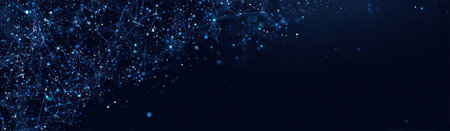 An abstract composition features sparkling, interconnected particles against a deep blue backdrop. The image showcases luminous specks in a network-like pattern, creating an ethereal and dynamic visual. The design is suggestive of a digital environment and could be used for various technology and design projects, or editorial content.