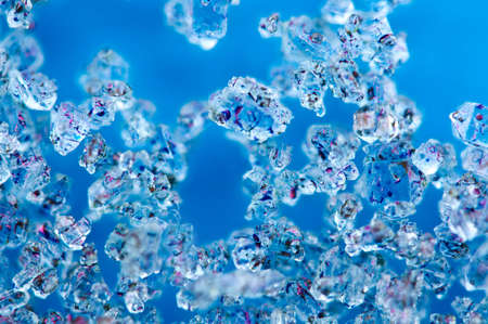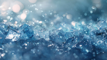 Frozen ice crystal texture with sparkling blue light and frosty abstract background