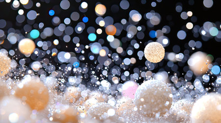 Captivating and richly textured black background adorned with shimmering particles, creating a mesmerizing bokeh effect that evokes elegance and wonder.