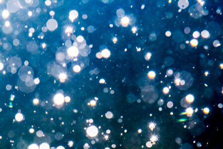 defocus of glitter vintage lights background. blue,white and black for Christmas and new year background.