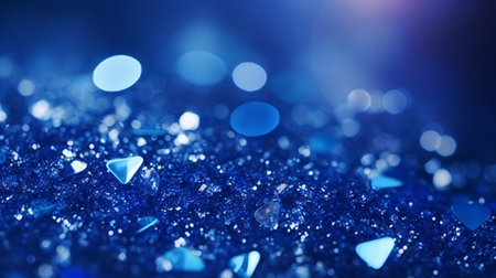 Sapphire glitter bokeh background. Unfocused shimmer royal blue sparkle. Crystal droplets wallpaper Ai generated