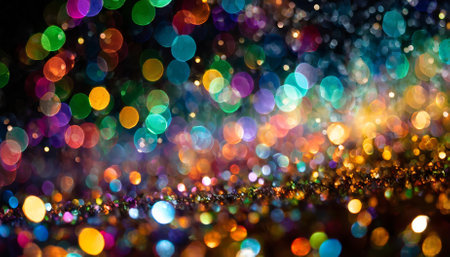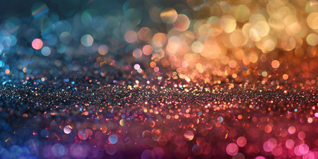 Abstract background with colorful glitter and bokeh lights, perfect for festive or celebratory designs.