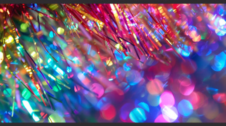 Macro Close-up of Sparkling Colorful Tinsel, Festive Holiday Decoration Detail