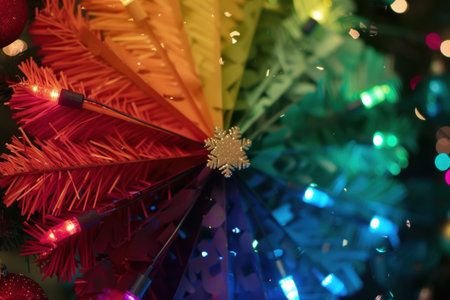 A bundle of multicolored tinsel emitting a dazzling array of light and casting a rainbow of hues across its surface