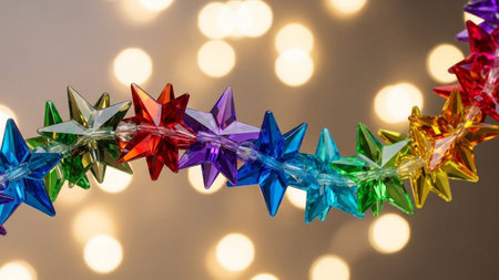 Colorful christmas star garland on bokeh background.