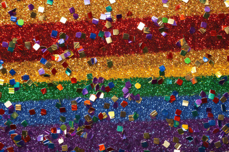 Multicolored confetti on the background of the LGBT flag.