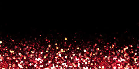 Beautiful Christmas red light background. Abstract glitter bokeh and scattered sparkles in gold, on black