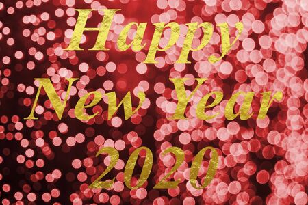 Red bokeh 2020 Happy New Year greeting card. Vector background.