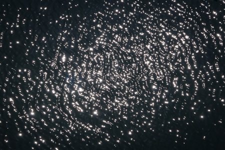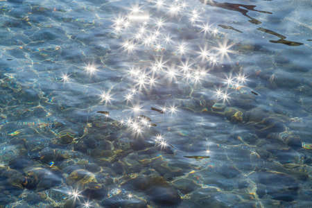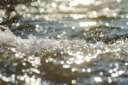 Captivating view of a flowing water surface exhibiting mesmerizing sparkles of light; ideal for backgrounds or creative designs evoking tranquility and beauty.