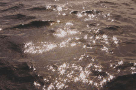 Detail of a sunlight reflecting in glittering sea. sparkler in water - background. sea water with sun glare and ripple. Powerful and peaceful nature concept.