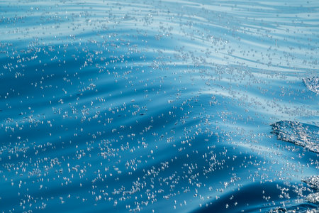 Abstract texture art blue water background with air bubbles close-up macro photography