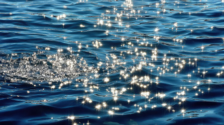 A serene view of sparkling blue water surface with sunlight reflections and gentle waves, embodying tranquility and showcasing nature's beauty and charm.