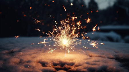 bright festive Christmas and happy new year sparkler in hand