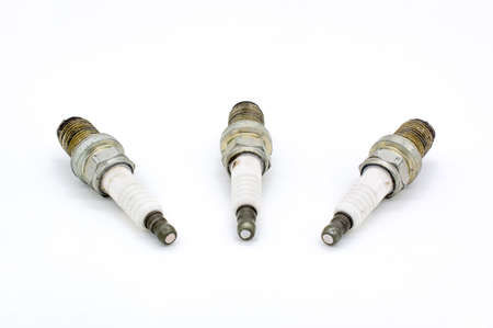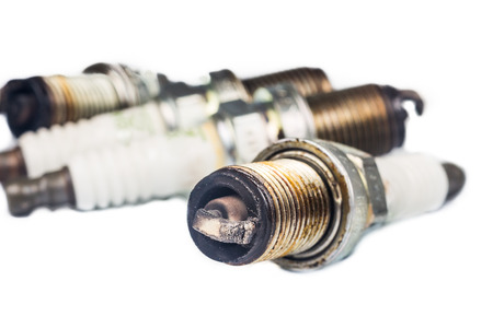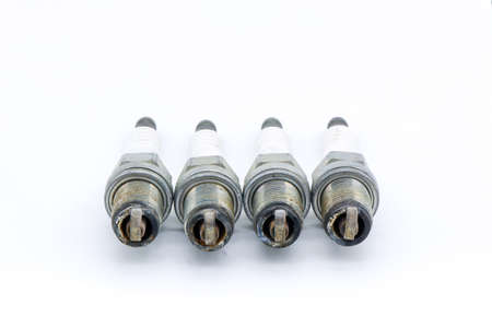 old burned spark plugs isolated on white background