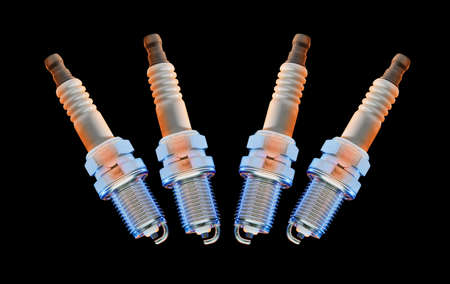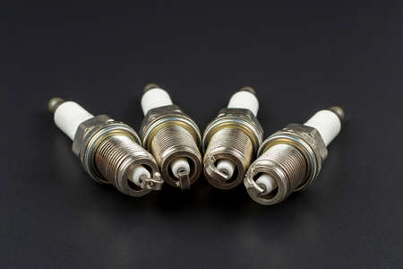 Spark plugs on black background. Car and motorcycle part.