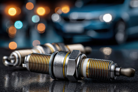 A high-quality close-up image of a spark plug showcasing fine details, reflections, and metallic textures, ideal for automotive themes.