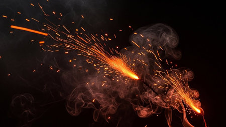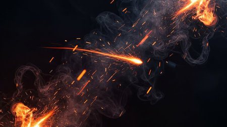 fire smoke and sparks on a black background