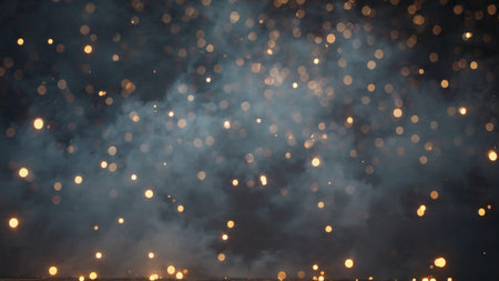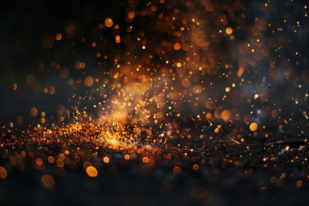 Sparks dance and shimmer against a dark surface, creating a mesmerizing display of light and warmth during the evening. The glow captures the beauty of a summer night.