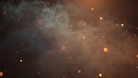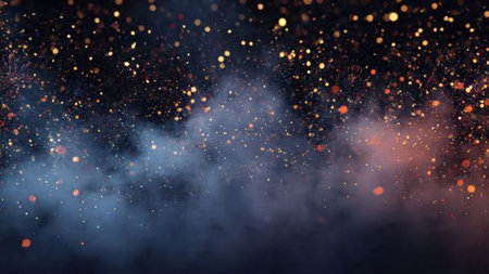 Abstract dark glittering fire particles.