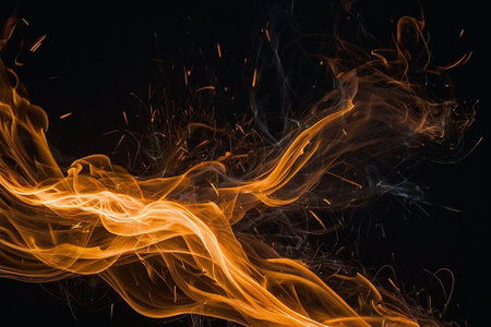 Abstract swirling flames with sparks on black background