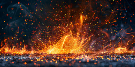 This captivating image captures a fire explosion with dynamic sparks and vivid flames, creating a dramatic visual effect. Perfect for themes of danger and energy.