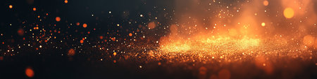 glowing glitter spark orange light fire on black industrial or party banner background