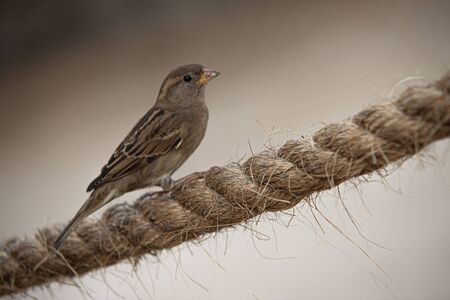 A female House sparrow. Sparrows are a family of small passerine birds. They are also known as true sparrows, or Old World sparrows, names also used for a particular genus of the family.