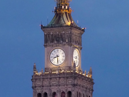 View of the Palace of Culture and Science. Warsaw, Poland. high-rise building.