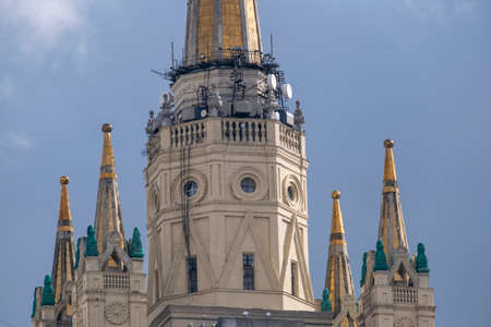 Moscow, Russia - July 13, 2021: The main building of the Moscow State University. Stalinist Empire style. Built in 1953