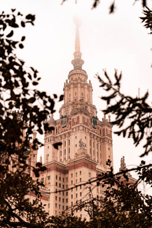 Lomonosov State University of Moscow, iconic Stalinist building in Moscow, Russia.