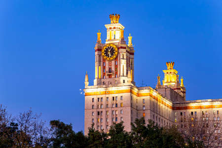 The Main building of Lomonosov Moscow State University on Sparrow Hills (autumn evening). It is the highest-ranking Russian educational institution. Russia